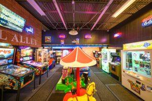 The arcade is located on the mid-level of the market. We feature modern pinball machines, classic video games, kiddie rides and a variety of skill based prize machines all maintained in a clean and family friendly environment.